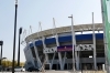 収容人数8,000人の野球場「絆スタジアム」と陸上競技場「55フィールド」の周りを囲むように数か所の遊具スペースやピクニックパビリオンが設置されており、たくさんの親子連れが訪れている外遊びスポット。遊具スペース下の青い地面が衝撃吸収マットになっているのもうれしいポイントです。
